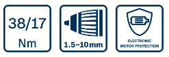 | Griezes mom. (mīksts/ciets/maks.)* | 17/38/- Nm |